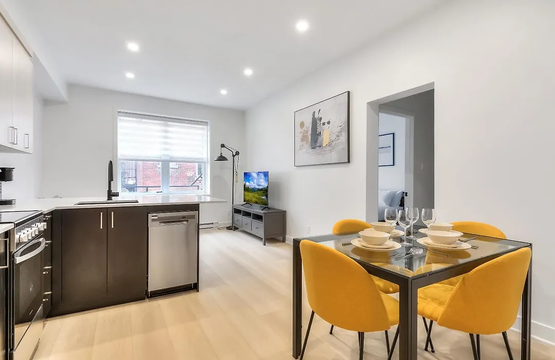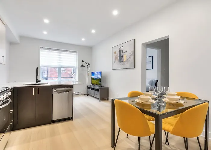 Obiekt noclegowy oferuje również pełnowymiarową kuchnię z czajnikami elektrycznymi, lodówką i piekarnikiem, a także urządzenie do parzenia kawy/herbaty. Obiekt leży 20 km od lotniska Montreal Pierre Elliott Trudeau International.